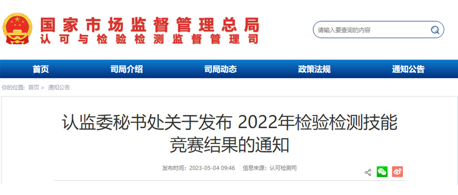 祝贺!全球通检测在2022年检验检测技能竞赛中荣获第15名