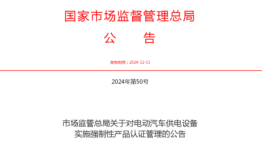 根据国家认监委最新发布的公告,自2025年3月1日起,有关认证机构将开始受理电动汽车供电设备(包括但不限于固定充电桩、移动式充电设施、随车充电设备等)的强...